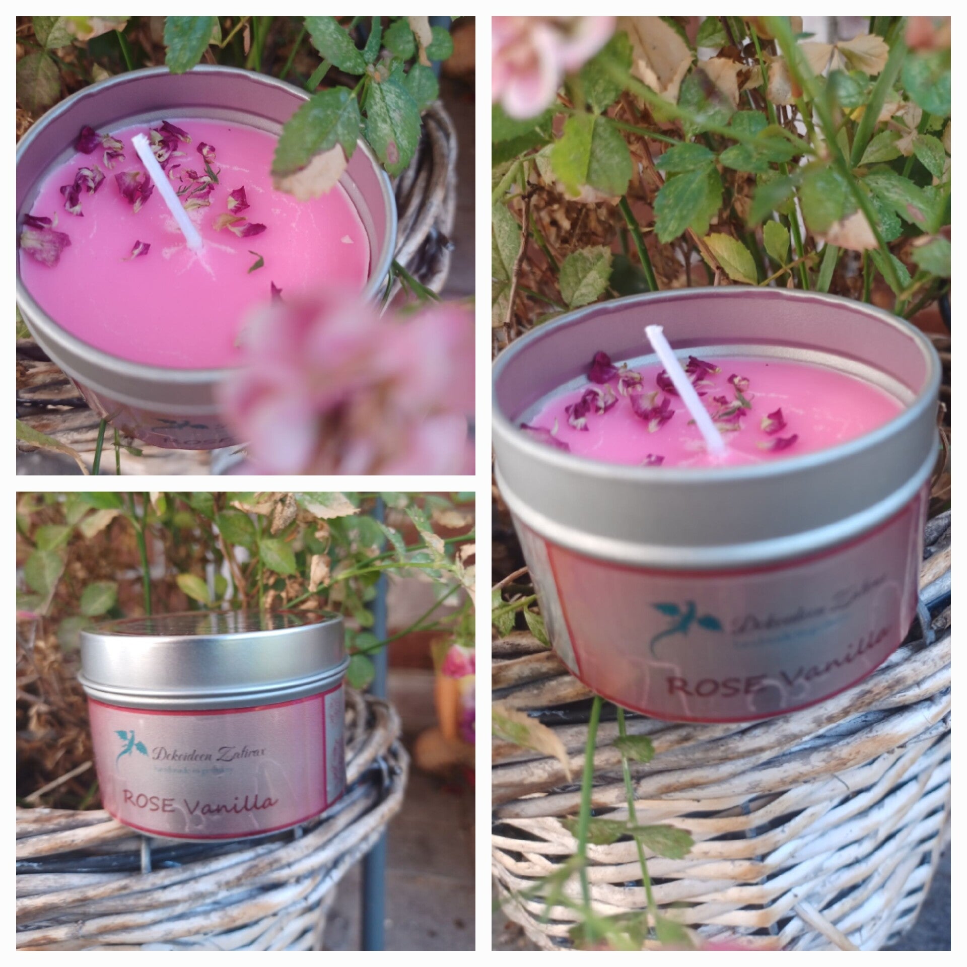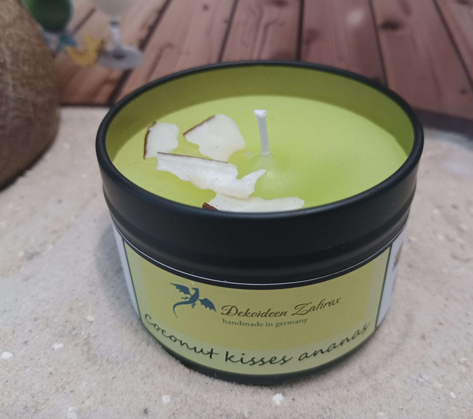 Handgefertigte Duftkerzen im praktischen Metallgefäß mit Deckel